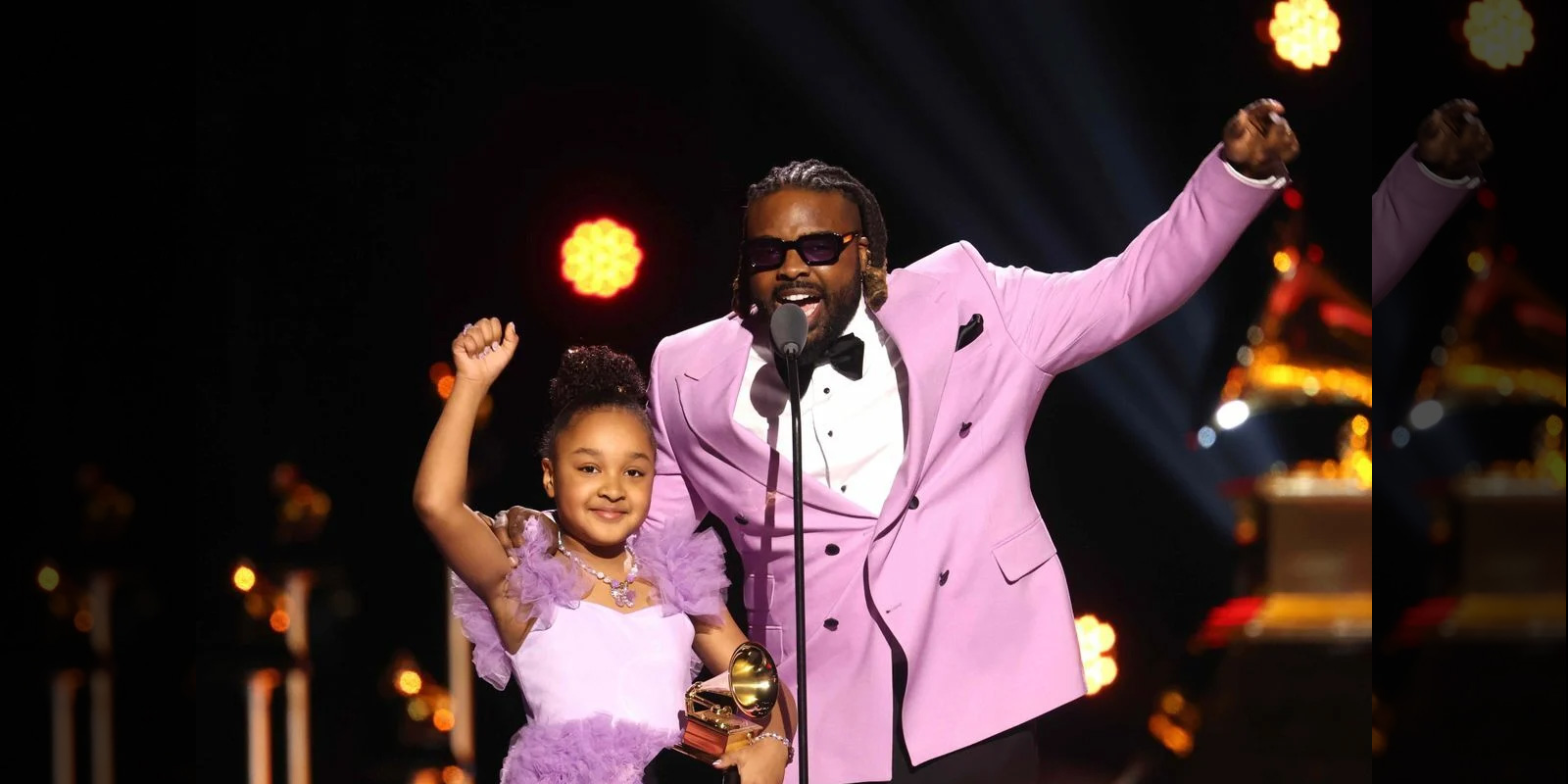 Both dressed in matching Pink, Fyütch thanked God and spoke about the importance of educating and entertaining the young, as well as empowering children. He also called the album an act of activism and self-love.